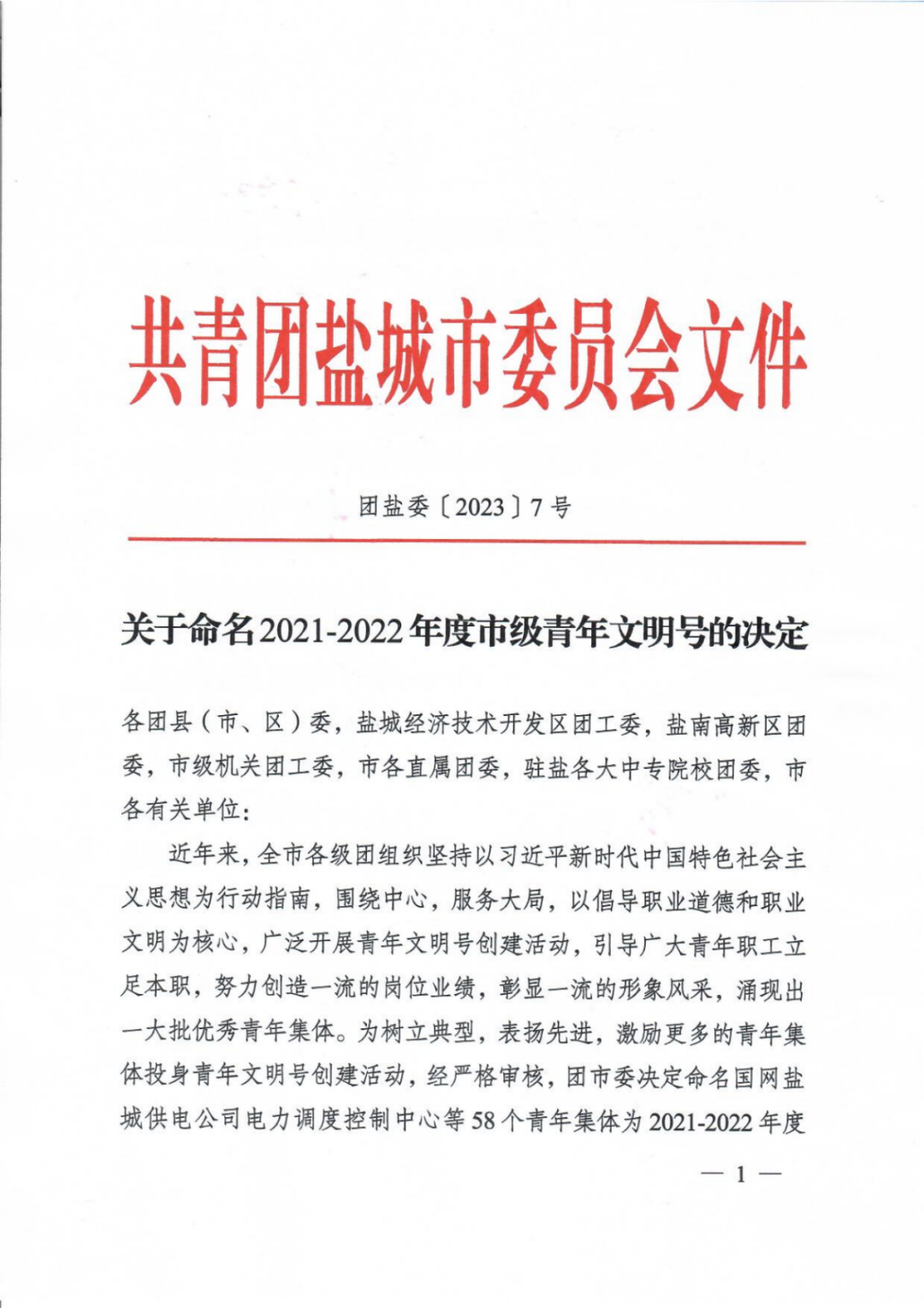 近日,共青團鹽城市委發布《關于命名2021-2022年度市級青年文明號的決定》,鹽城港航運集團生產操作創新團隊、大豐海港港口有限責任公司“海燕”班組以優異的表現榮獲“2021-2022年度市級青年文明號”稱號。