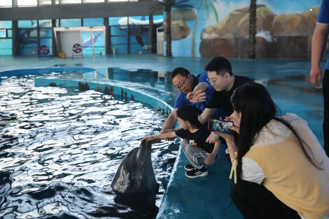 鹽城港大豐港區(qū)海洋世界是以海洋為主題的情景劇式互動體驗館,在這里,小朋友們觀看了海豚表演、了解了海洋知識。在柔和的音樂聲中,海豚開始表演節(jié)目,從水中一躍而上,濺起晶瑩的水花,而后如同身姿矯健的跳水運(yùn)動員輕輕落入水中;它們在訓(xùn)導(dǎo)員的指揮下,盡情地舞動著,展現(xiàn)著優(yōu)美的舞姿?,F(xiàn)場響起了一陣陣喝彩和掌聲,整個表演都充滿了靈性,觀眾們深深地被海豚的英姿所震撼。表演結(jié)束后,現(xiàn)場還有和海豚合影的機(jī)會,小朋友們大膽伸出雙手去撫摸它們,現(xiàn)場氣氛熱烈,小朋友們流連忘返。
