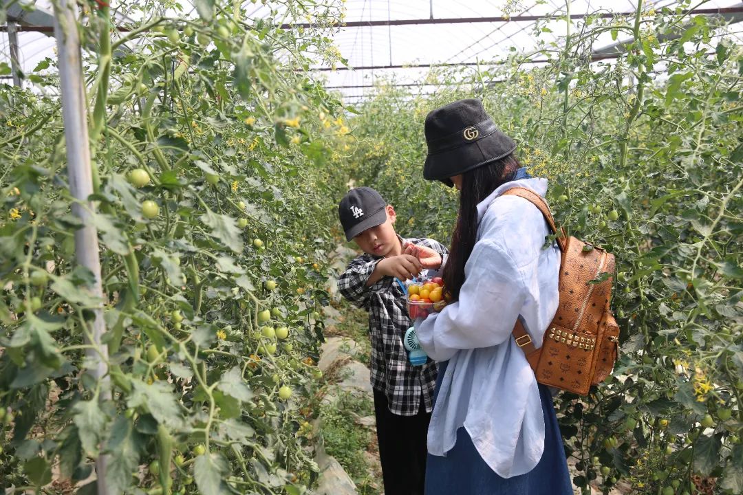 “媽媽,我們要去摘小番茄咯!”“媽媽,我要摘最大最甜的小番茄送給你?!痹诤⒆优c家長們你一言我一語的交談中,親子采摘活動正式開始。家長們手把手地教孩子們?nèi)绾闻袛喙麑嵆墒炝藳]有,提醒孩子在采摘過程中要愛護(hù)藤蔓不要折斷根莖,讓孩子們在勞動中學(xué)習(xí)知識體驗生活。孩子們歡快地在走道里穿梭著,每一雙小手里都握著鮮美甘甜的果實,笑容在一張張稚嫩的臉龐上歡快地綻放著,家長們也通過與孩子們的互動與交流,增進(jìn)了彼此之間的了解。