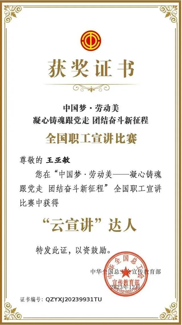 近日,中華全國總工會在廣大職工中組織開展“中國夢·勞動美一凝心鑄魂跟黨走團(tuán)結(jié)奮斗新征程”全國職工宣講比賽,初賽以線上“云宣講”方式進(jìn)行。集團(tuán)工會聯(lián)合會有針對性地組織廣大職工參賽,迅速組織發(fā)動制作短視頻,在鼓勵廣大職工的同時,重點激勵具備一定榮譽(yù)基礎(chǔ)、榮獲過各級各類勞動模范、五一勞動獎?wù)碌葮s譽(yù)稱號的職工,充分發(fā)揮示范帶頭作用。其中,集團(tuán)大豐港區(qū)成品油水上加油站王亞敏和航運集團(tuán)上港國際公司丁浩明同志榮獲中華全國總工會宣傳教育部頒發(fā)的“云宣講”達(dá)人稱號。