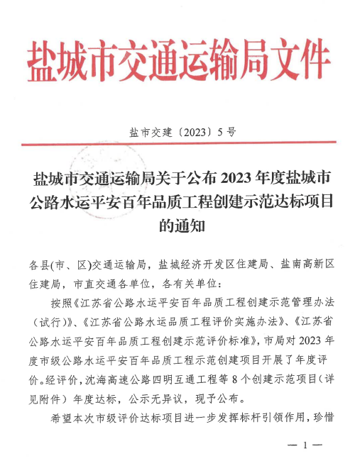 近日,鹽城市交通運輸局發布2023年度鹽城市公路水運平安百年品質工程創建示范達標項目的通知,大豐港區通用碼頭3#泊位項目成功當選。