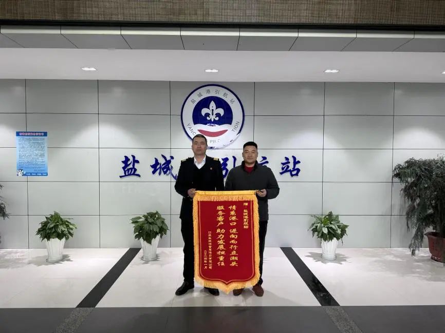 鹽城港引航站收到江蘇鹽城港智慧港口有限公司、中天大豐海纜有限公司、鹽城捷順船舶代理有限公司的三面錦旗