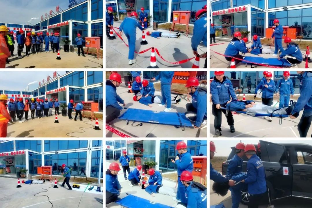 此次演練是針對現場工人作業時突發觸電情況進行的模擬。演練內容為事故發生、發現傷員、脫離帶電體、情況匯報、預案啟動、傷員急救、人員轉運等,并安排專職電工講解防觸電及觸電后急救知識。