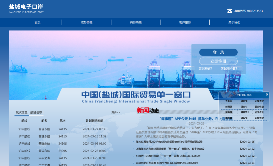 升級優(yōu)化鹽城電子口岸平臺現(xiàn)有功能,持續(xù)推進(jìn)鹽城港網(wǎng)上營業(yè)廳建設(shè),促進(jìn)數(shù)據(jù)互通共享,打造面向全流程、全業(yè)務(wù)、全方位服務(wù)的鹽城電子口岸+鹽城港網(wǎng)上營業(yè)廳一體化服務(wù)平臺。