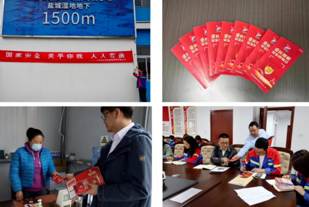 聯合濕地礦泉水公司懸掛安全宣傳橫幅,通過現場講解、發放宣傳手冊等方式,向員工普及國家安全相關知識和法律法規,幫助職工學習了解總體國家安全觀。活動中共發放“國家安全教育日”宣傳手冊50余張。