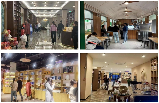 園區(qū)內(nèi)多元業(yè)態(tài)有機融合,購物、文化展示、休閑娛樂等服務一應俱全,滿足了不同游客的個性化需求。特別是以國內(nèi)外特色為主題的展銷館,如俄羅斯館、大洋洲館、歐洲館等,讓游客領略各地文化精粹,輕松實現(xiàn)全球購。同時,港泊面館、港泊雅苑、港泊韓膳閣、港泊中歐班列體驗館和港泊韓式風味體驗店等特色餐飲也為游客提供了地道美食,備受游客青睞。
