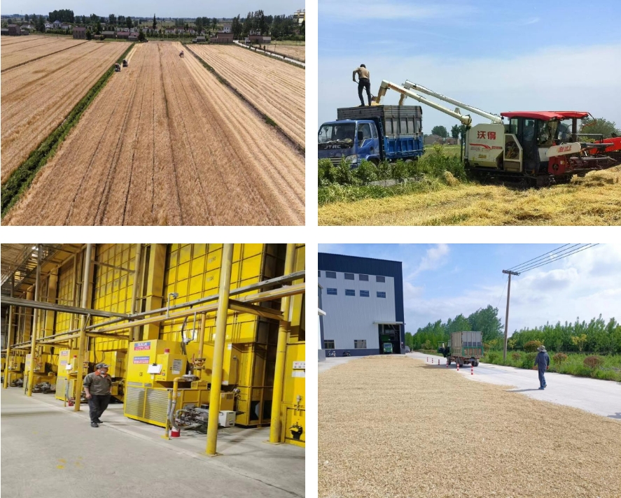 從收割—過磅—烘干,各部門配合生產調度,全力參與“三夏”大忙,形成“田頭、場頭、倉頭”三位一體的工作機制。農技工作人員深入田間地頭,全面摸排登記農田實際情況,時刻關注轄區雨情,研判各地塊成熟時間,按照“成熟一片,收割一片”的原則,第一時間組織聯合收割機及時入場,確保按期完成收割任務;加工中心的6條種子烘干線馬力全開,做到人歇機不歇,24小時晝夜不停搶烘收割回來的麥子,確保達到標準水分,安全入庫歸倉。