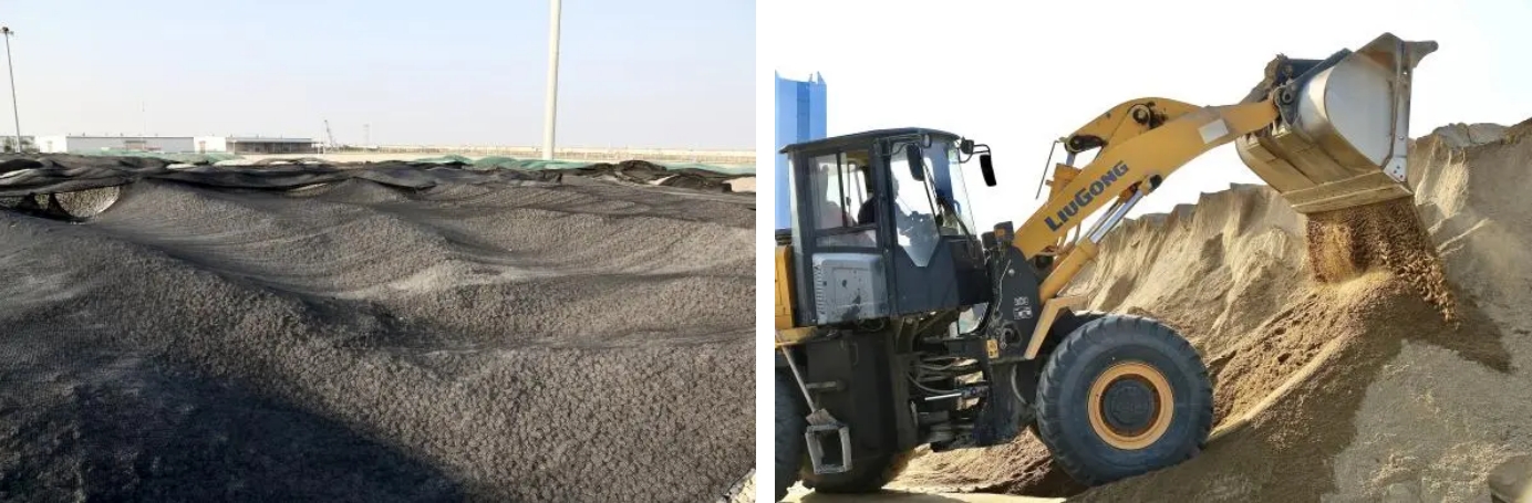 黑色的防塵網下苫蓋著堆積如山的貨物,黃色的鏟斗等著他一次次的起落