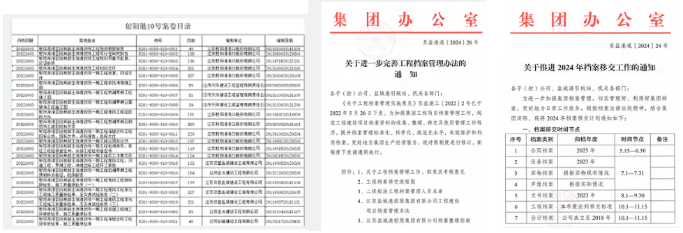 為切實做好工程項目檔案的精細(xì)化管理,射陽港區(qū)認(rèn)真學(xué)習(xí)、貫徹執(zhí)行鹽城港集團關(guān)于檔案精細(xì)化管理要求,在全體系、各層面、多角度上下功夫,堅持“標(biāo)準(zhǔn)化”整檔、“集約化”存檔、“數(shù)字化”建檔,不斷推動檔案管理數(shù)據(jù)化體系建立健全,為工程項目提供更加精準(zhǔn)有效的數(shù)據(jù)支撐,保障項目進度暢通推進。