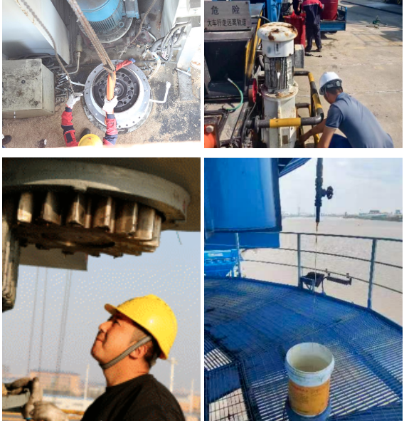 門機作為碼頭的重要設備,在港口裝卸中發揮著主力軍作用。然而,長期的工作負荷和惡劣的工作環境,使得門機減速箱齒輪油品出現乳化現象,導致潤滑性能下降,齒輪箱內部部件易產生磨損、發熱等問題,進而影響門機的正常運行。港區維修人員對門機所有起升、變幅和行走運作機構的減速箱進行檢查,清理減速箱內部污垢,并根據生產作業時間,“見縫插針”式地開展油品更換工作,同時對電氣系統進行了仔細檢查,確保門機運行的穩定和安全。