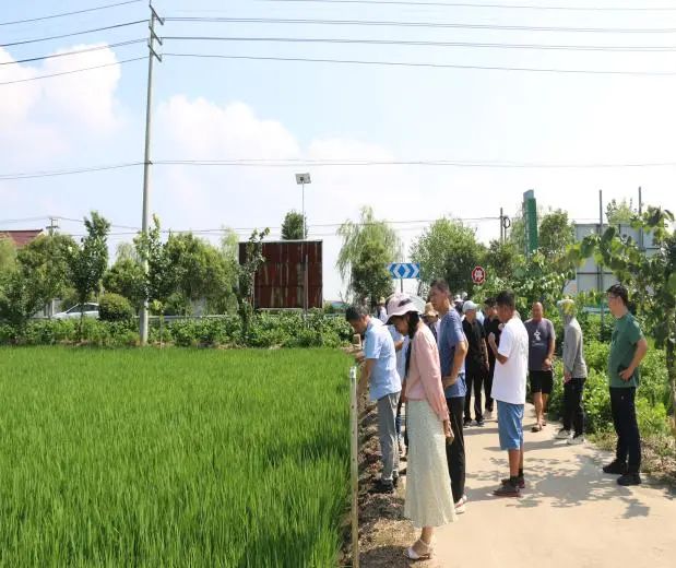 與會人員一行先后參觀了種子供應(yīng)鏈中心和種植示范基地,實地觀摩種子加工、精選、包裝、倉儲等智能化裝備,詳細了解了金色農(nóng)業(yè)種子加工條件和技術(shù)水平。在稻麥推廣示范基地內(nèi),金色農(nóng)業(yè)自主選育的“南粳802”“金香糯1號”水稻長勢喜人,工作人員詳細介紹了種植水稻品種的特性、優(yōu)勢以及種植技術(shù)要點,參會人員走進田間地頭,了解品種株型、長勢,并對其抗病能力、產(chǎn)量構(gòu)成要素等進行探討交流。