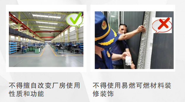 不準違規采用易燃易爆可燃夾芯材料彩鋼板搭建廠房、庫房;