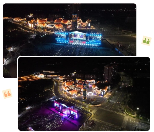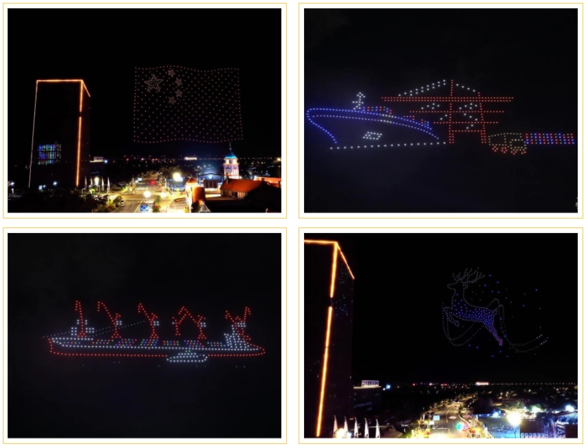 夜幕徐徐降臨,500架無人機同時升空,一場主題慶祝新中國成立75周年的無人機燈光秀正式開演。借用科技編程語言,敘述著鹽城從過去到未來的輝煌巨變,時而變化成濕地精靈,時而演變成現代大港,時而匯聚成鮮艷的五星紅旗,這不僅是一場視覺的盛宴,更是對新中國成立75周年的深情祝福。精彩的表演引得來自周邊的游客情不自禁地拿起相機,定格眼前的美好。