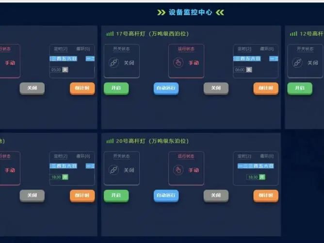 為深入貫徹國家“雙碳”目標(biāo),射陽港區(qū)聚焦節(jié)能降耗、高效運(yùn)行為抓手,利用4G遠(yuǎn)程模塊聯(lián)動(dòng)PC端或微信小程序,實(shí)現(xiàn)港區(qū)高桿燈照明系統(tǒng)的集中控制管理,根據(jù)生產(chǎn)需求合理開關(guān)作業(yè)區(qū)域高功率燈具,既降低了人工煩瑣操作,又有效降低電力消耗減少能源浪費(fèi),延長燈具的使用壽命。據(jù)了解,港區(qū)20桿高桿燈,每日開啟平均約8桿高桿燈,每年可節(jié)約電量103680KWh,節(jié)約電費(fèi)8萬余元,經(jīng)濟(jì)效益顯著。