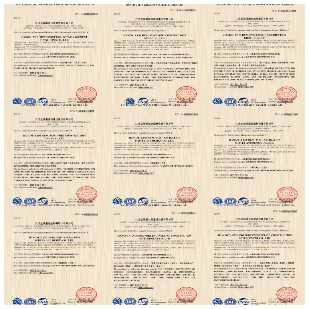 近日,港灣建設集團及其子公司順利通過中國船級社質量認證有限公司(CCSC)的審核,成功獲得質量管理、環境管理和職業健康管理體系認證證書。這標志著港灣建設集團正式建立了相應的全面管理體系,在質量管理、環境管理、職業健康管理的科學化、規范化、精細化方面邁上了新臺階。