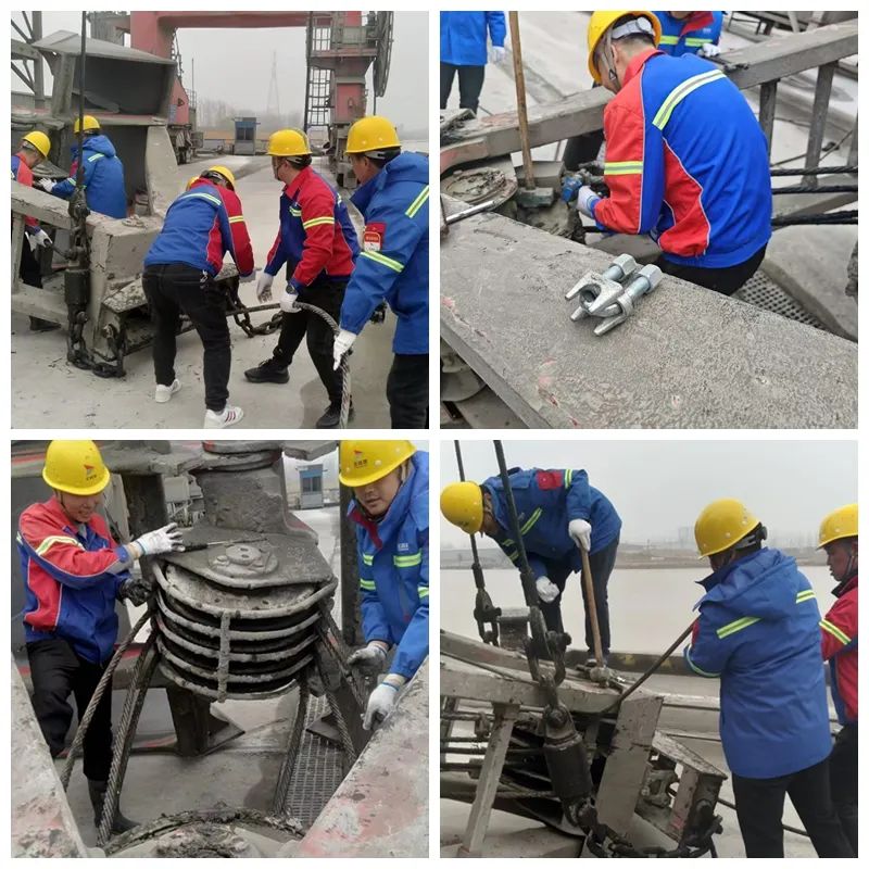 門機是港口裝卸作業的“主力軍”,而鋼絲繩作為關鍵部件,其安全性直接關聯作業效率。一季度,港區設備保障團隊利用生產間隙,對港區1#門機的鋼絲繩開展更換。面對時間緊、任務重的挑戰,團隊創新采用“分段式拆裝+滑輪組輔助”工藝,成功將單臺設備更換時間壓縮20%,并同步完成潤滑保養和隱患排查工作。設備組組長邱師傅介紹:“我們提前模擬操作流程,細化每個環節,抓住門機使用空檔期,確?!畵Q繩不停產’?!备鼡Q后,門機故障率下降20%,裝卸效率提升10%,為沖刺生產目標提供了堅實保障