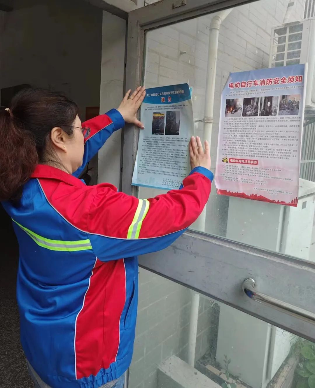 安全意識的提升是減少事故發生的首要環節,因此,工作人員在單元出入口、公告欄等顯眼位置張貼宣傳公告,內容涵蓋電動車安全使用、停放規范以及充電注意事項等。