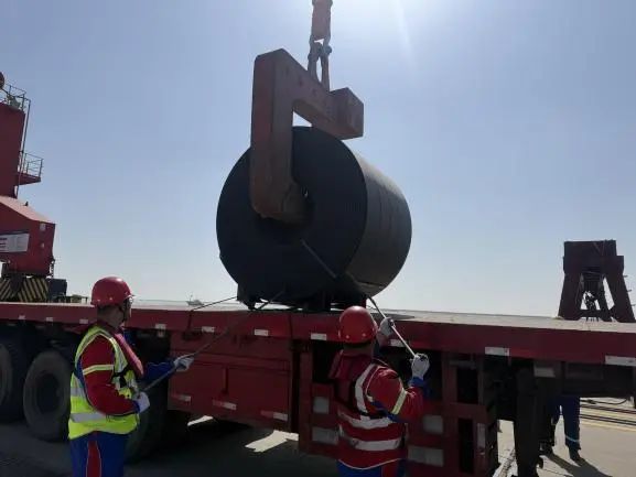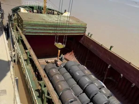 針對鋼卷裝卸特性,港區優化全流程跟蹤服務模式。科學規劃裝卸方案,實現門機與運輸車輛的高效協同;同步建立“貨主-船方-作業團隊”三方聯動機制,通過專屬聯絡群實時溝通對接需求,形成無縫銜接的作業鏈條。