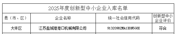 江蘇省創(chuàng)新型中小企業(yè)入庫名單