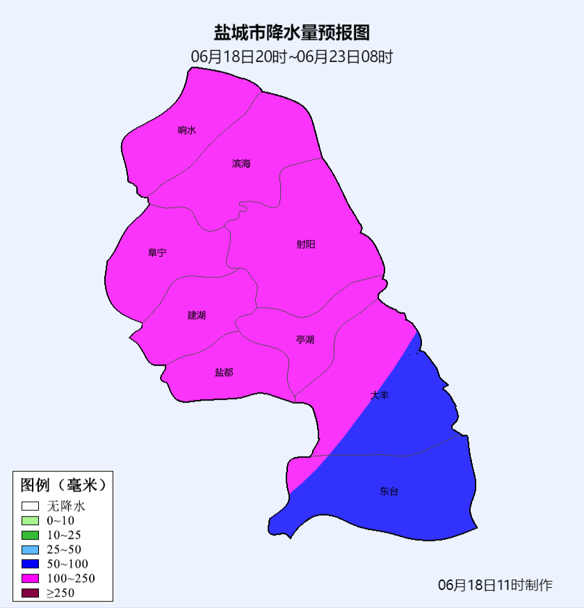 19-22日過程雨量:80~150毫米,局部180~220毫米,雨量主要集中在19-20日,21日雨帶逐漸南壓,22日降水主要在中南部地區。降雨期間局地可能伴有雷電、小時雨強40~70毫米的短時強降水和8~10級雷暴大風等強對流天氣。