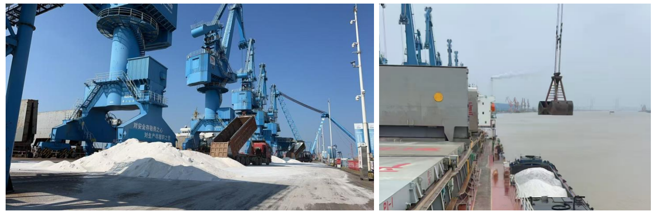 蘇鹽井神作為蘇鹽集團控股子公司,年產銷食用鹽、工業鹽等超過800萬噸,是響水港區2025年“一全一重兩搶”攬貨專項行動中新開發的海河聯運重點客戶。11月份,蘇鹽井神已抵港及預報靠泊響水港的船舶包括4條海輪和48條內河船,總裝卸量首次突破單月10萬噸。