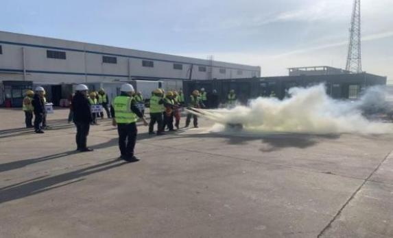 鹽港物業(yè)公司則聯(lián)合集團內部跨境電商、保安公司等兄弟單位,開展多場景聯(lián)合演練。在莎士比亞跨境電商產業(yè)園,模擬工作人員觸電場景,應急搶險小組迅速切斷電源、設置警戒區(qū),醫(yī)療救護組同步開展心肺復蘇,在8分鐘內完成險情處置與人員救援;在危化品運輸車輛專用停放區(qū),針對車輛故障引發(fā)的危險品起火,消防隊啟用干粉滅火器、消防水炮等器材,15分鐘內撲滅“火情”并控制泄漏風險;在星湖花園小區(qū),模擬居民樓電器短路起火,物業(yè)應急團隊按“先控制、后消滅”原則滅火,疏散引導組逐戶引導居民有序撤離,全程分工明確、響應迅速。港灣開發(fā)建設集團以典型案例為指引,組織作業(yè)現(xiàn)場消防滅火應急演練,演練過程指令清晰、協(xié)作有序,有效提升了施工人員應急處置能力。