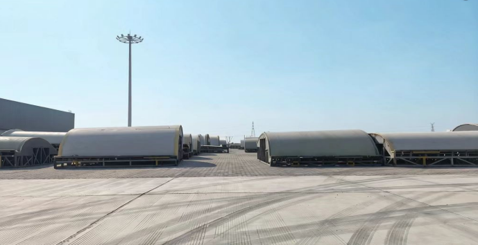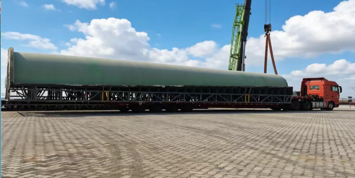 據悉,此次堆存的36件“陽模”新貨種均系風電葉片模具的“家庭成員”,作為國家一類開放口岸,濱海港區物流公司創新推出“物流+轉運+堆存”一體化服務模式。針對“陽模”體積大、精度要求高等特性,公司專門制定專項作業方案,劃定2600平方米專屬堆存空間;為便于吊裝與轉運,提前對3組84米超長“陽模”進行科學截斷處理。最終,36件總重量達228噸的“陽模”貨種,僅用2天時間便順利轉運至海河聯運指定區域完成堆存、保管,拓寬了港區新貨種作業品類。