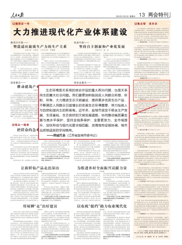 對此,江蘇省鹽城市委書記周斌代表深有體會:“解難題、強(qiáng)服務(wù)、送政策,對于企業(yè)來說,給的不只是‘白紙黑字’,更是‘真金白銀’。”