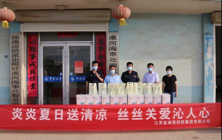 8月16日下午,集團黨委委員、董事、副總經理陳正華率隊前往濱海港區,深入基層慰問高溫一線海關、海事、邊檢干部員工,對他們長期以來關心和支持鹽城港港航事業發展表示感謝,為他們送去了夏季防暑物品,給員工們帶來了絲絲清涼。集團工會副主席戴禮娣參加。陳正華還與一線員工進行了面對面親切交流,近距離了解一線員工身心情況,并鼓勵大家用更高的工作熱情回應集團對大家的關心。同時,他還要求港區持續做好安全生產和疫情防控工作,督促企業、單位做好各項安全防護措施,預防各類安全事故發生,切實保障廣大職工的身心健康,營造和諧穩定的勞動關系,為集團更可持續發展營造安全環境。