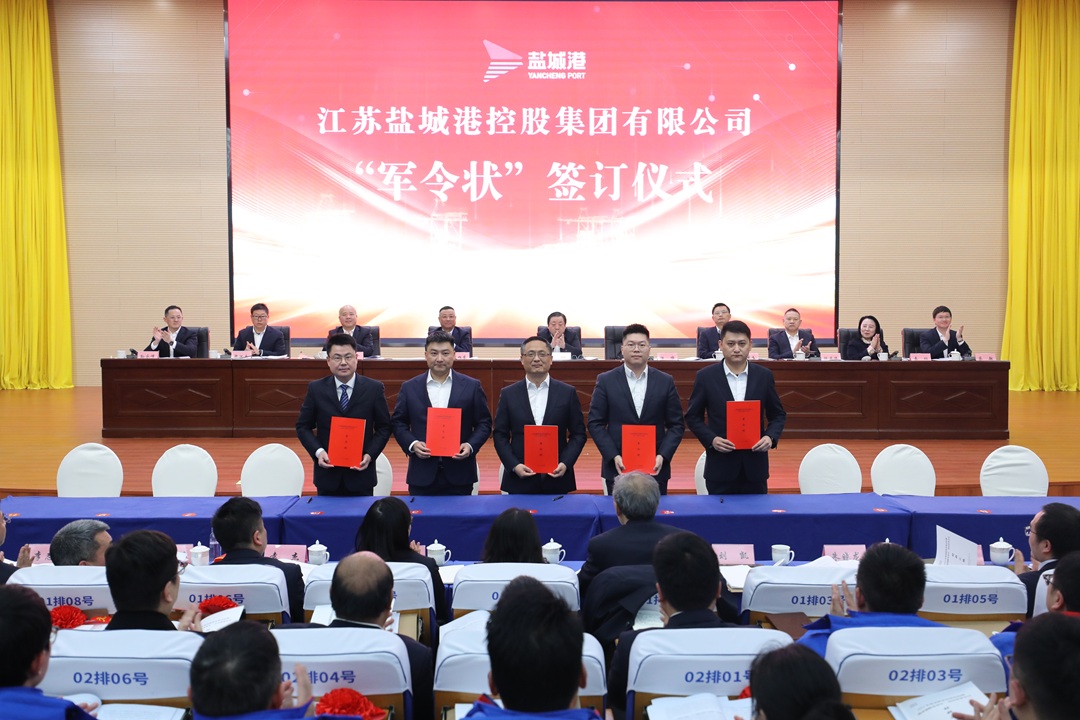 會(huì)議宣讀了關(guān)于表彰2024年度先進(jìn)集體及個(gè)人的決定,并為獲獎(jiǎng)代表進(jìn)行頒獎(jiǎng);科技集團(tuán)、大豐港集團(tuán)、響水港集團(tuán)等5家單位作表態(tài)發(fā)言。資本運(yùn)營(yíng)公司、大豐港集團(tuán)、航運(yùn)集團(tuán)和集團(tuán)投融資部等10單位和部門(mén)現(xiàn)場(chǎng)簽訂生產(chǎn)經(jīng)營(yíng)軍令狀。