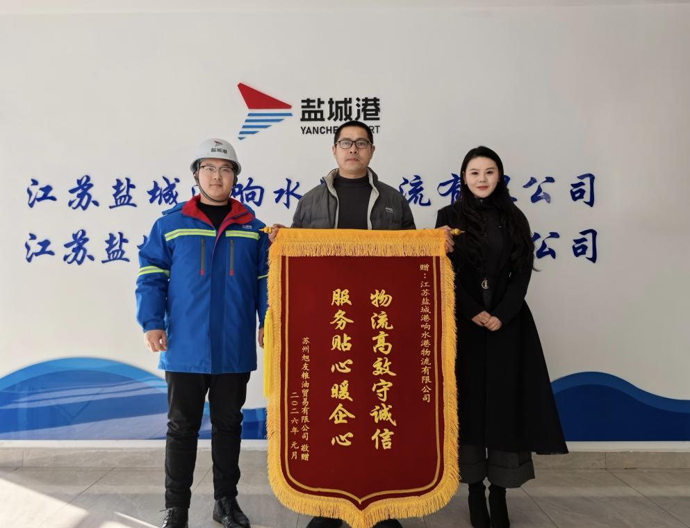 近日,響水港區(qū)收到一面來(lái)自蘇州旭友糧食貿(mào)易有限公司,印有“物流高效守誠(chéng)信,服務(wù)貼心暖企心”的錦旗,不僅見(jiàn)證了兩家企業(yè)攜手共贏的深厚情誼,更是對(duì)港區(qū)優(yōu)質(zhì)、高效、貼心服務(wù)的充分肯定。