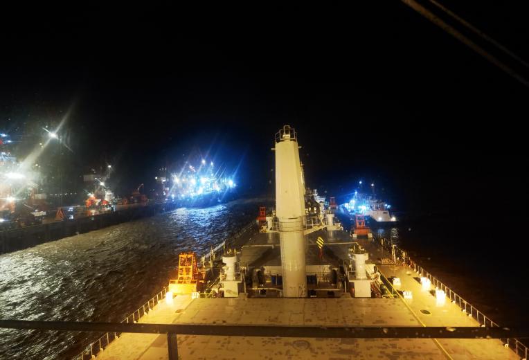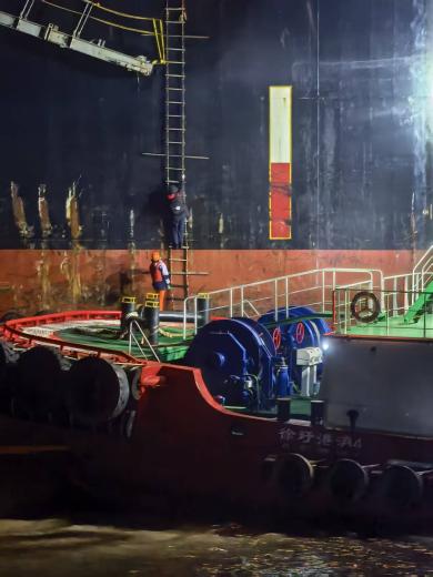 近日,為給凌晨到港的利比里亞籍“環球賢者”輪騰出寶貴靠泊窗口,引航站深夜奔赴港口一線,登上馬耳他籍“米拉”輪,開啟了一場與時間賽跑的夜間作業。