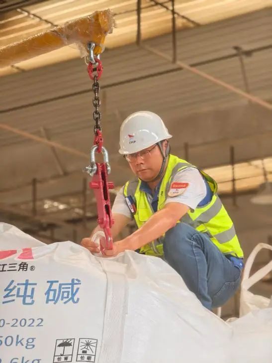 純堿是一種極其重要的工業(yè)原料,廣泛應(yīng)用于玻璃、輕紡、制鹽和冶金等項(xiàng)目,被譽(yù)為“化工之母”。為保障純堿業(yè)務(wù)首航順利,響水港區(qū)精心籌備,組織生產(chǎn)、倉(cāng)儲(chǔ)多部門(mén)聯(lián)動(dòng),細(xì)化作業(yè)環(huán)節(jié),克服酷暑考驗(yàn),倉(cāng)儲(chǔ)組長(zhǎng)王玨更是24小時(shí)駐守生產(chǎn)一線,工裝被汗水反復(fù)浸透,但依然堅(jiān)守。